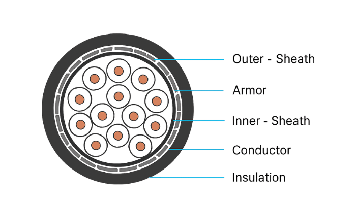 Unarmoured/Armoured- G.S. Round wire/Flat strip/Galvd Tape Insulation/Inner/Outer Sheath-PVC