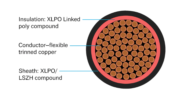 Trinned cooper XLPO insulated & LSZH sheathed 1100V AC/1800V DC as per TUV specifications 2PFG-1169/08-2007